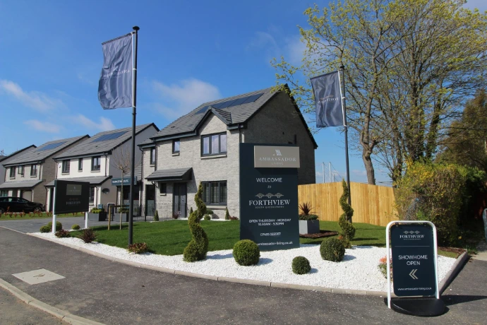 At Mactaggart & Mickel’s Sandringham Gate development in Newton Mearns, we were appointed to deliver a bespoke external signage package alongside a full marketing suite fit-out, supporting the premium launch and presentation of this exclusive residential site.