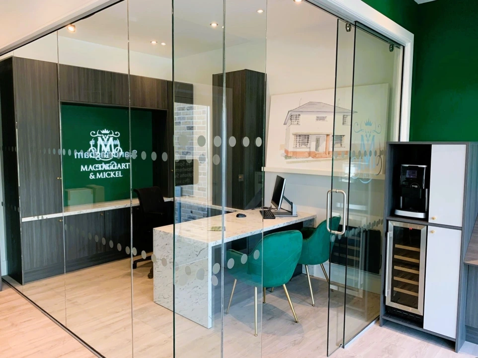 The result is a cohesive and professional environment that supports the sales journey from first arrival through to customer engagement within the marketing suite.